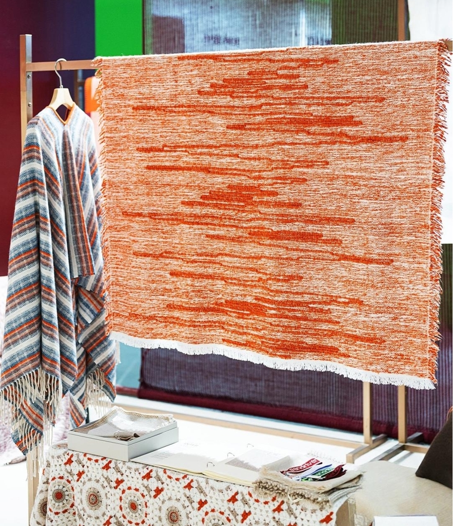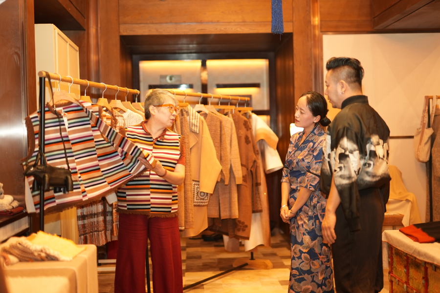 “我们的非遗融合已经不仅仅局限于一省一市,沙涓希望把整个产业联动起来,形成一个氆氇文化的生态圈。”郭秀玲在现场表示。除了云南地区,国家级非遗新疆艾德莱斯绸织染技艺也已进入氆氇的融合版图。今年4月,企业团队远赴新疆莎车县,寻访当地手工艺人,探索非遗服饰“氆氇+”的新可能。